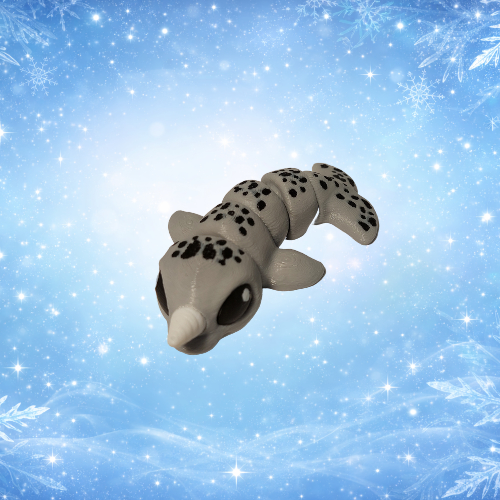 Малыш дельфина выполнен в мягком сером цвете с крупными блестящими глазками. Сегментированный корпус имитирует изгиб тела маленького дельфинёнка и делает фигурку живой даже в статике.