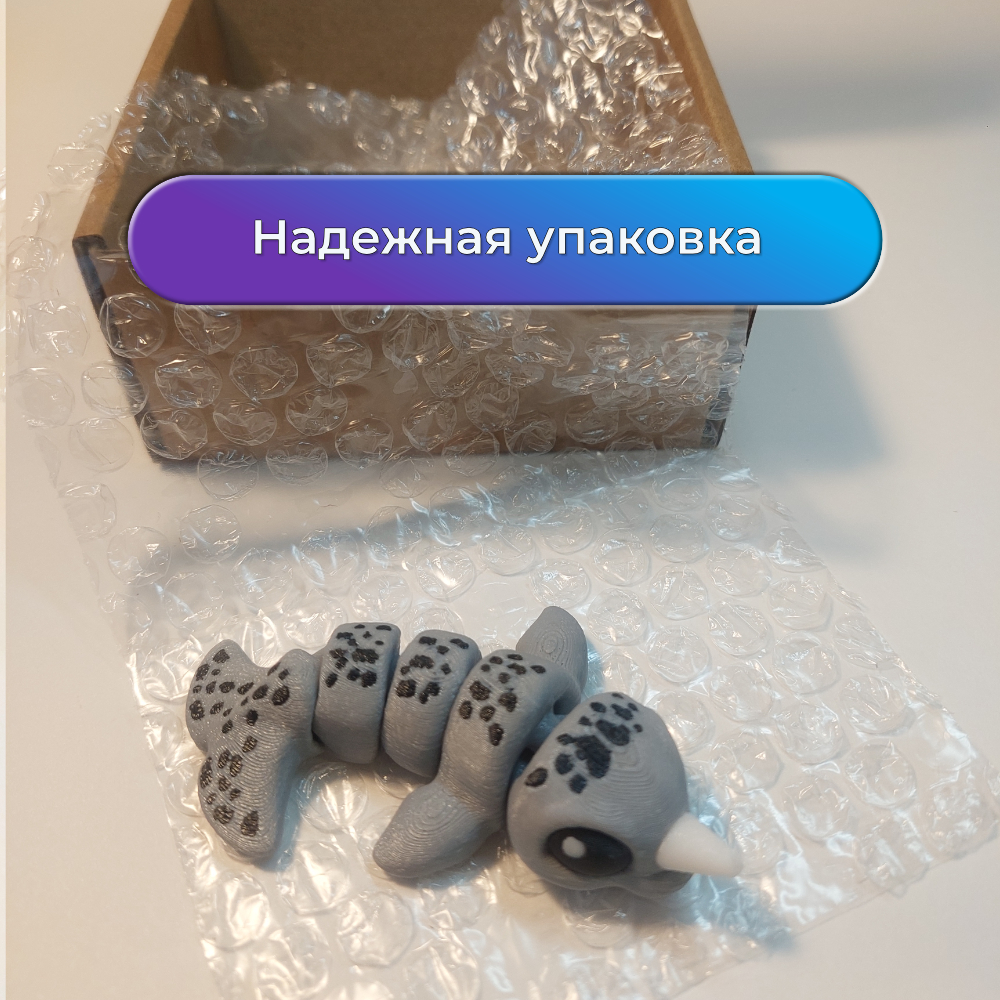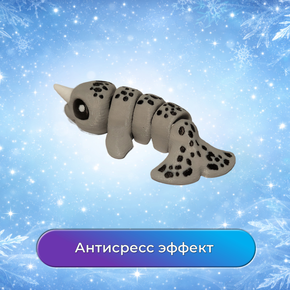 Фигурка напечатана на 3D-принтере, состоит из нескольких сегментов и приятно «перетекает» в руках. Её хочется крутить, сгибать и просто держать в ладони, как компактный fidget-антистресс.