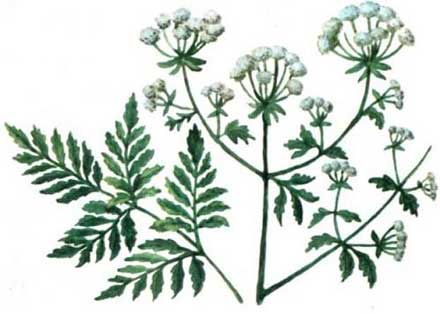 Другое название – вех ядовитый. Произрастает в Европе, и внешне напоминает съедобное растение дягиль. Однако, есть его не следует, так как все растение ядовитое, особенно стебель и корневище. Выделяет вещество цикутоксин, которое вызывает судороги и остановку дыхания.